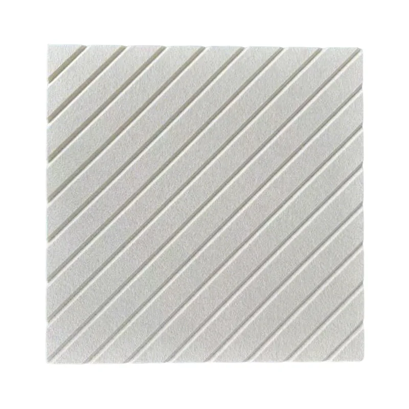 Ang aming de-kalidad na beige V-cut PET felt acoustic panels ay gumagamit ng 100% polyester fiber bilang base material, na may pinong V-cut texture sa ibabaw, pakiramdam na malambot at komportable sa pagpindot. Ang interior ay puno ng mga pinong micropores na epektibong kumukuha ng tunog sa epekto, na pumipigil sa pagmuni-muni at pag-awit. Hindi lang nito nireresolba ang echo noise ngunit pinahuhusay din nito ang aesthetics ng pader sa maraming nalalaman nitong beige na kulay, na tinitiyak na ang pagbabawas ng ingay ay hindi sumasalungat sa iyong istilo ng palamuti – praktikal at maganda!