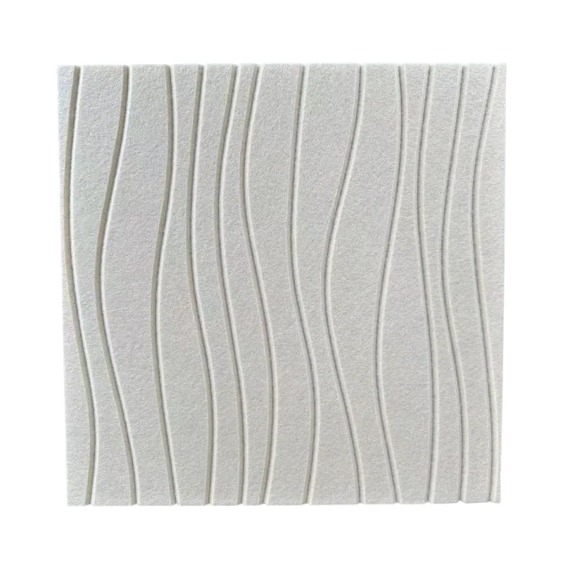 Available sa higit sa 40 mga pagpipilian sa kulay, kabilang ang eleganteng beige water wave na disenyo, ang Beige Water Wave PET Felt Acoustic Panel ay lumalaban sa fade, moisture-resistant, at wear-resistant. Ginawa gamit ang advanced na thermal bonding technology, ang mga panel na ito ay nagpapanatili ng kanilang kulay sa loob ng mahabang panahon, na tinitiyak ang kanilang kagandahan at pagganap sa iba't ibang kapaligiran.