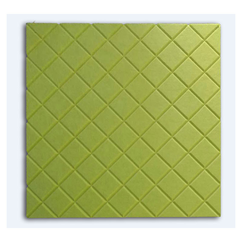 Ang lahat ng mga hibla ay pahalang at patayo na magkakaugnay sa panahon ng paggawa, na ginagawang matibay, nababaluktot at lumalaban sa epekto ang PET acoustic board.Sa pagsuntok ng karayom, maraming maliliit na butas sa PET Felt Acoustic Panel, na ginagawang isang mahusay na produkto ng acoustic ang PET Felt Acoustic Panel upang mabawasan ang ingay at gawing mas mahusay ang tunog, mas tahimik ang espasyo.